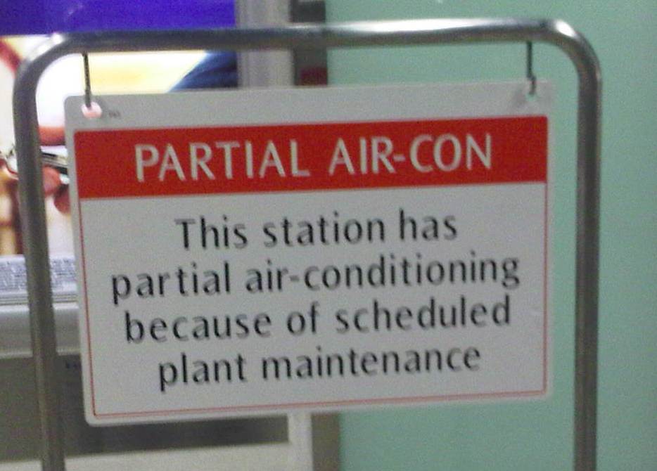 Afin d’éviter une avalanche de plaintes au service consommateurs et dans le courrier des lecteurs des journaux locaux, la société de transports en commun annonce ce matin, toute honte bue, qu’aujourd’hui, seule une climatisation partielle rafraichît la station… How shocking (même si la station est aussi fraîche que d'habitude) !